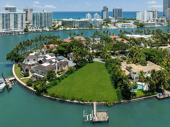 Experience waterfront luxury on this rare 20,052 sq ft pie-shaped lot boasting 170 feet of prime waterfront with sweeping bay views. Perfectly positioned at the point of a quiet cul-de-sac on guard-gated Allison Island, this property offers the island's most spectacular vistas and accommodates large yacht docking. Enjoy the exclusivity of this intimate community of only 50 waterfront homes while being conveniently located between South Beach, Sunset Harbour and Bal Harbour's finest dining and shopping. Breathtaking western sunsets over the wide bay complete this peaceful sanctuary. An exceptional canvas to build your dream estate.