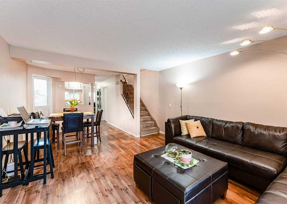 OPEN HOUSE: NOV. 15 & 16, SAT. & SUN., 1-4 PM. Welcome to this beautifully maintained 3-bedroom, 1.5-bathroom townhouse in the community of Temple! This 2-storey, NO CONDO FEE Townhome features an open-concept main floor with laminate flooring flowing seamlessly through the living and dining areas. The living room is bright, open and welcoming, with patio doors opening to a private fenced backyard—perfect for summer barbecues—and offers convenient access to an OVERSIZED SINGLE DETACHED GARAGE. The upgraded kitchen is filled with morning sunshine and perfect for cooking and enjoying your morning coffee – the perfect spot to start your day! The kitchen features QUARTZ COUNTERTOPS, dark maple cabinetry, and an UPGRADED TILED BACKSPLASH. Upstairs, you’ll find three spacious bedrooms and a full bathroom, offering comfort and privacy for the whole family. This home comes with UPDATED ROOF SHINGLES, WINDOWS, HIGH-EFFICIENCY FURNACE about 10 years ago. Temple is a vibrant community offering schools, parks, public transit, a community centre, shopping, and plenty of restaurants. Quick access to McKnight Boulevard makes it easy to get onto Stoney Trail. The community is served by both public and Catholic schools, making it ideal for families. Whether you’re a first-time buyer, a young family or an investor, don’t miss this incredible opportunity to own. Don’t miss out – come and see to appreciate!