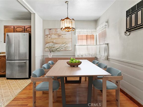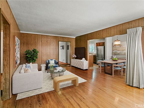 Fantastic purchase opportunity on this 3 br 2 ba home with a large backyard for limitless possibilities. Covered porch, spacious living room with beautiful wood floors, dining room with wood floors, bright kitchen with stainless steel refrigerator and stainless steel freestanding range/oven, vented exhaust fan in kitchen, primary bedroom and bath, mirrored wardrobe doors, separate family room, covered patio area, laundry area in patio, 2 car attached garage, and huge backyard. Location convenient to schools, shopping and freeways. Don't miss out!