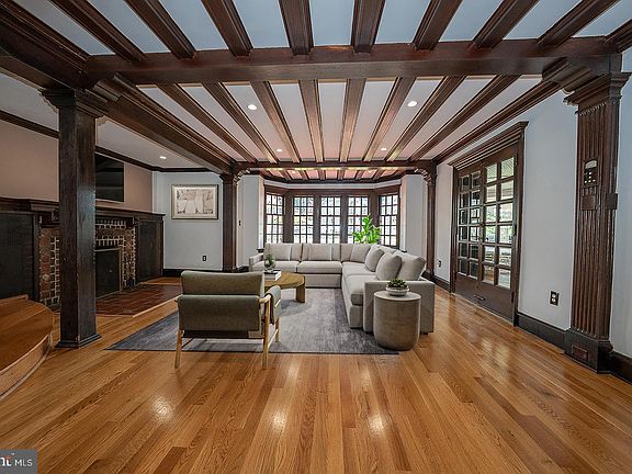 Welcome to 6640 Lincoln Drive — a stunning, updated home that blends timeless architectural elegance with contemporary comfort. With over 5,100 square feet of living space, this stately property features 6 bedrooms, 3 full bathrooms, and 3 half bathrooms, making it ideal for today’s lifestyle. Step into the unique curved sunroom, a warm and inviting entry that sets the tone for this special home. Inside, the formal living room boasts exposed wood beams, gleaming hardwood floors, and an ornate wood-burning fireplace, all of which echo the home's rich historic character. The living room flows seamlessly into the elegant dining area and the updated kitchen, complete with stainless steel appliances, breakfast bar, and ample cabinetry. Just off the kitchen, you’ll find a spacious laundry/mudroom and a convenient half bath. Upstairs, the expansive primary suite offers a serene retreat, featuring a wall of built-in bookshelves, a second wood-burning fireplace, a luxurious full bath, and a walk-in closet. Two additional bedrooms on this level share a charming Jack-and-Jill bathroom. The third floor features three spacious bedrooms and a full hall bath, providing ample space for family, guests, or home offices. The finished basement adds even more versatility with space for a gym, rec room, or media area, along with an additional half bath. Situated on a beautiful, tree-lined street on a corner lot in desirable West Mt. Airy, this home is the perfect combination of historic beauty and thoughtful updates. Located close to shopping, restaurants, Fairmount Park, and public transportation. Easy commute to Center City. A rare opportunity to own a true Philadelphia classic!