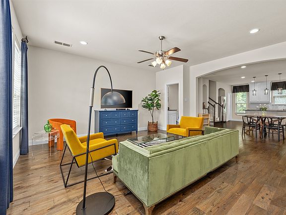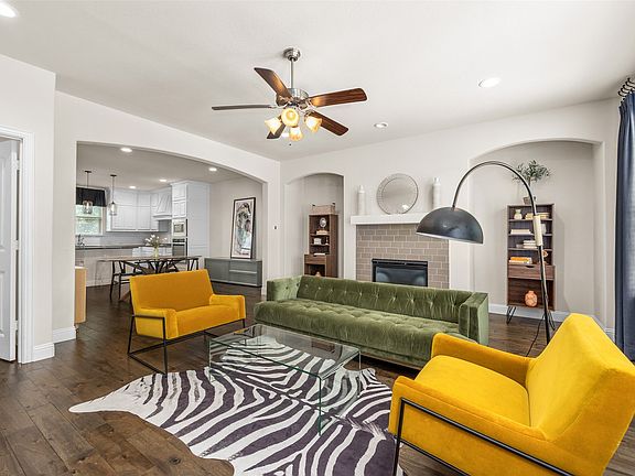 Experience refined living in this spacious and luxurious townhome, designed with both comfort and style in mind. This stunning residence is perfect for entertaining and everyday living. Enter through the two-car garage into a generous lower-level living space featuring a wet bar, two walk-in closets, and access to a covered patio, deck, and fenced backyard—ideal for hosting guests or enjoying quiet evenings outdoors. Upstairs, the bright, open-concept main level includes a stylish gourmet eat-in kitchen with granite countertops, stainless steel appliances, a gas cooktop, and custom white cabinetry with designer finishes. The oversized island flows into a spacious dining area and an inviting living room with a wall of windows and a cozy gas log fireplace. A huge walk-in pantry and nearby powder bath add both function and convenience. The expansive primary suite offers beautiful natural light, space for a sitting area, and a luxurious ensuite bath with double vanity sinks and new quartz counters, a soaking tub, separate shower, and a massive custom walk-in closet. Enjoy easy access to a nearby city park, miles of scenic trails for walking and biking, and the convenience of the Chisholm Trail Parkway, shopping, dining, and well-established neighborhoods with mature trees.