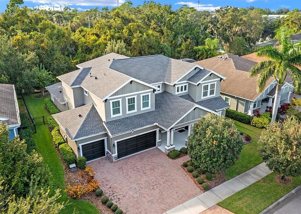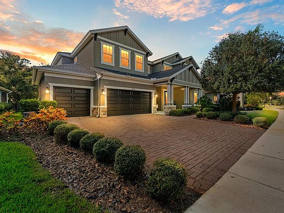 Welcome to this beautifully maintained WestBay Gasparilla home featuring 4 bedrooms, 3.5 baths, a new roof (2023), and unmatched privacy with park views in the front and serene conservation land in the back. Located on the hospital power grid, offering peace of mind during storms. Step inside to soaring 20-ft ceilings, rich hardwood floors, and a bright, open layout. The gourmet kitchen boasts granite countertops, a large island, stainless steel appliances, 42” cabinets, and a walk-in pantry—perfect for everyday living and entertaining. The first-floor primary suite offers a spa-like bath with a jacuzzi tub, dual vanities, and a massive walk-in closet. Upstairs, you’ll find 3 spacious bedrooms, 2 full baths, and a theater/media room. A private office, upgraded laundry room, and 3-car garage complete the home. Relax in the screened-in lanai overlooking a fenced yard and lush conservation. Waterset offers resort-style amenities, including 4 pools, 2 clubhouses, 2 fitness centers, a dog park, splash pad, tennis, pickleball, and basketball courts, plus a scenic 9-mile trail for walking, running, or biking. Ideally located—just 20 minutes to Downtown Tampa, 30 minutes to Tampa International Airport, and 40 minutes to Sarasota