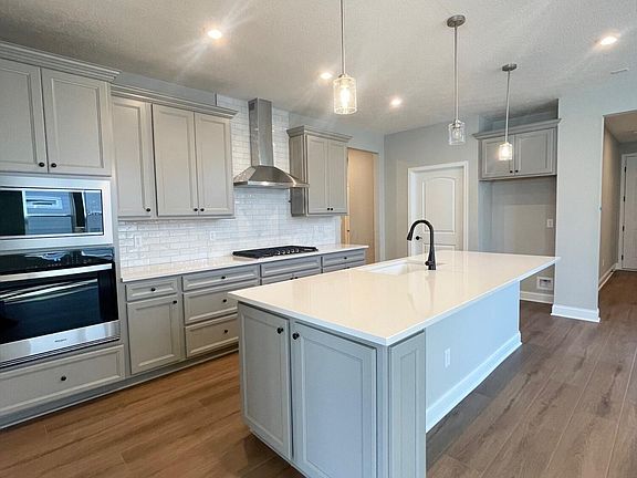 THIS HOME IS READY FOR MOVE IN! This 2 story, 3 bed, 3 bath home offers over 2,400 sqft of living space including a spacious kitchen with quartz counters and island, upgraded SS appliances, LVT flooring and upgraded finishes, trim and paint throughout. Enjoy the versatility of an open floor plan with additional sunroom, primary suite, additional full bed and bath and first floor laundry. The primary suite includes a walk in closet, walk in shower and dual sinks with quartz counters. The second story includes the third and final bed/bath combo as well as an additional loft/living space. The 2 car, attached garage also boasts a 4' extension to assist with additional storage needs.
