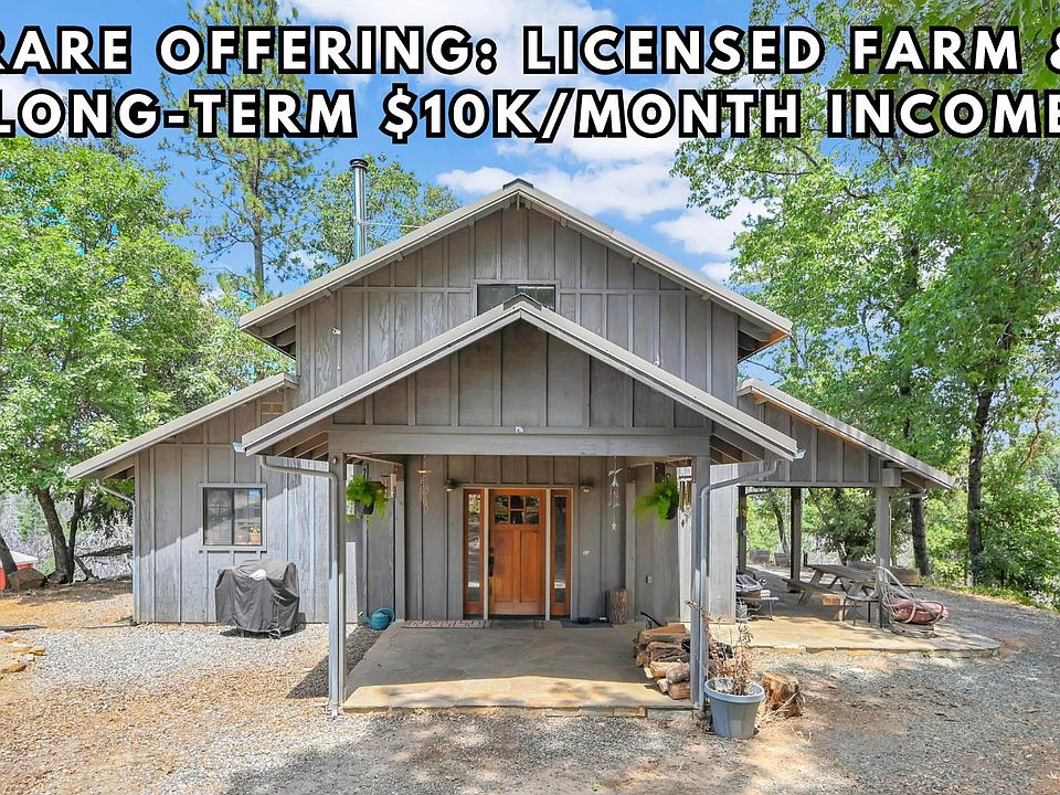 Outstanding investment opportunity with a five-year lease in place at $10,000 per month, providing $120,000 annual income. This property offers a solid return with immediate cash flow and long-term stability. Total guaranteed lease income of $600,000 through 2030. Strong cap rate and excellent potential for appreciation make this an ideal addition to any portfolio. Tenant in place- income begins day one! Here is an exceptional opportunity to own a fully licensed, income-producing farm on over 35 acres of prime land. Amenities include a 2,100 sq. ft. warehouse with concrete floor and ample power, a light-assisted greenhouse designed for year-round cultivation, and new terracing that creates room for future expansion within the licensed footprint. The modern farmhouse offers 2 bedrooms, 2.5 baths, a loft, cathedral ceilings, a gourmet kitchen, and a clawfoot tub in the primary suite, making it ideal for owner use, staff housing, or rental income. Seller financing may be considered with a substantial down payment, and the current operator with 20+ years of experience is available to assist with licensing transition. This turn-key property offers both stability and upside for serious investors or operators.