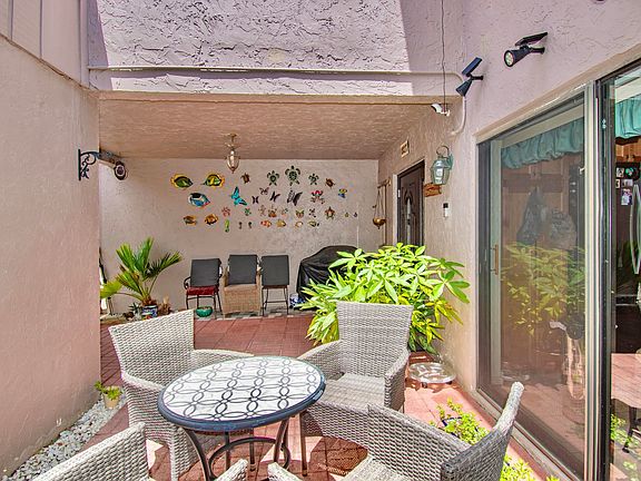 Fenced yardCenter islandPrivate courtyardGranite countersEnclosed air-conditioned bonus roomTropical potted plantsWood cabinets