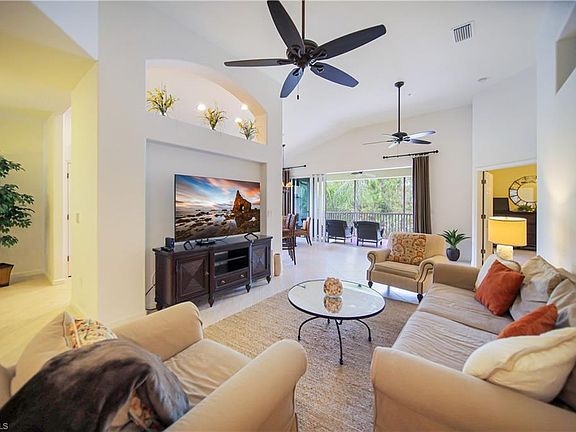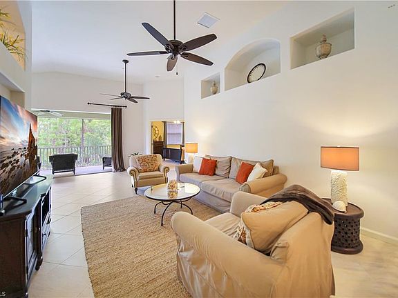 Experience unrivaled tranquility and comfort in this gorgeous second-floor coach home located in the highly desirable Alden Woods at Lely Resort. Overlooking a serene, tree-lined preserve, this residence provides a peaceful retreat with volume ceilings, abundant natural light, and an open layout. The spacious primary suite is a true highlight, featuring a king-size bed, spa-like en-suite bath with a large walk-in shower, and a soaking tub perfect for relaxing after a day in Naples. Two additional bedrooms offer flexibility and privacy for family and guests. Offered turnkey furnished, the home is spotless, quiet, and fully equipped for a seasonal stay. Residents of Alden Woods enjoy a private clubhouse and pool, while membership transfer is available to The Players Club & Spa, offering world-class amenities including tennis, resort-style pools, a fitness center, spa, fine dining, and more. Conveniently located just minutes from downtown Naples and Marco Island beaches, Lely Resort provides an exceptional setting for the ultimate Florida vacation. Available for this winter season.