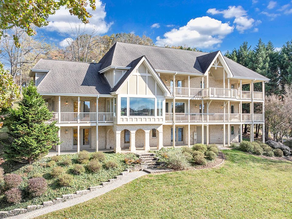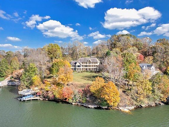 One of the MOST CHARMING homes on SML! Privacy, sunset & water views galore! ASTOUNDING water views from each room & 7 covered decks. One-of-a-kind custom 4-BR Tudor style home w/ updates including fiberglass entry door w/ side panels, hardwood stairs, luxury kitchen w/ SS appliances, white cabinets & quartz. Lake-level w/ LVP, wet bar w/ granite, beverage frig & icemaker, custom entertainment center & optional 5th bedroom (4-BR septic system). Newer HVAC's. New paver-stone firepit area & walkway to double slip dock. New composite decking on walkway to & party deck of dock. Entry level boasts beautiful hardwood floors, cathedral ceiling in dining area, primary bedroom option & custom eat-in kitchen. Lofted living room on upper- level w/ 3 bedrooms. Two are optional primary bedrooms, one offers cathedral ceiling & loft area & space that could be finished. Must see in person to appreciate!