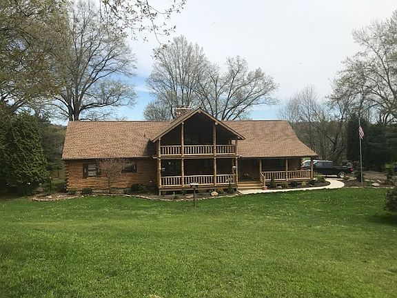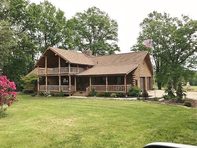 Very well built log home constructed in 1992 with 25ft cathedral ceilings! 6+ acres secluded around 200 yr old oak trees, open pasture for horses, grape orchard & more Many updates with a new 4-5 stall barn, all electric fencing, a huge all log construction front porch, kitchen, baths, flooring, etc. Great retirement/starter home with 3 bedrooms on first floor with loft on second floor. Northwest schools! This home is a MUST SEE and A GREAT OPPORTUNITY TO OWN this home, seller regretfully must leave it. Call for an appointment to view anytime.