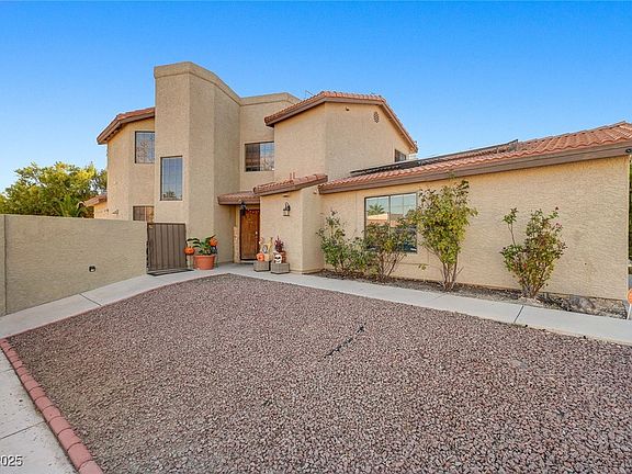 Located in the desirable Northwest area of Las Vegas, this beautiful 2 story CORNER LOT home has it all! Featuring 4 bedrooms and 2.5 baths, with the primary bedroom conveniently downstairs—complete with stylish barn doors, a walk-in closet with built in organizers, and a beautifully remodeled bathroom and shower. Enjoy vaulted ceilings and a cozy gas fireplace in the living room, plus a bright dining area and a kitchen with granite countertops, stainless steel appliances, and a walk-in pantry. Laminate and tile flooring throughout, Ecobee thermostat, and solar panels for energy efficiency. The spacious backyard is perfect for entertaining with a patio, in-ground pool with BRAND NEW pool pump, and a relaxing spa. Additional highlights include a 2 car garage with storage, tankless water heater, water softener, and LOW HOA! Close to freeways, schools, shopping, dining, and more! Must see this home today!