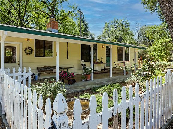 Perfect country living on 25 acres just before you arrive into the historic town of Mountain Ranch. You'll feel at home with the white picket fence, fish pond & covered porch to greet you into your home. The paneled walls and knotty pine ceilings and hardwood floors says country. The home is comfortable with a recently upgraded kitchen with quartz counters, stainless steel dishwasher & stove and antiqued cabinets. The second bedroom was the original house and could easily be a Mother-in-law quarters with its own bathroom and kitchen area. The house also has a stand-up cellar for storage, a carport, a side barn, and 2-car garage. Bring the animals because there is 25 acres of usable land waiting for them. The beauty of the private location is you are still 10 minutes from hospitals, schools & restaurants. The property has a small seasonal pond in the front, circular driveway for lots of guests. Zoned residential agricultural 10 so a 2nd home on the hill would be doable. Back of property was burned in Butte fire in 2015.