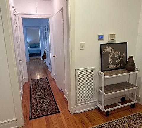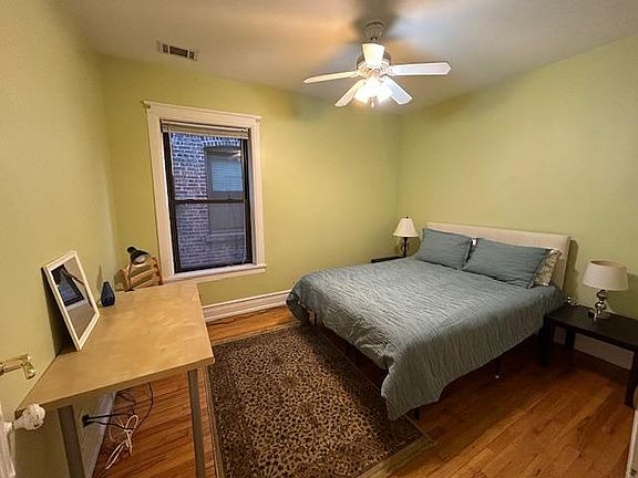 SUNNY, SPACIOUS Two-bedroom apartment, on the first floor of a vintage, walk-up, brick three-flat. Space is 1,300+ sqare feet, and has newly renovated 2 full baths, central AC, fully equipped kitchen, granite counter tops, and dishwasher. Large double living room. Beautiful original woodwork. Each bedroom is roomy and warm. The cozy common room is great for dining and relaxing. There is a large, brightly lit, enclosed back porch, perfect as a quite work space or creative studio. Perfect 3 season porch. Just west of Loyola University, you are close to public transportation, easy street parking, and great dining and shopping . This is a winning apartment for students, couples, families, and visiting professionals. Coin-op 2 washers and 2 dryers in the basement.