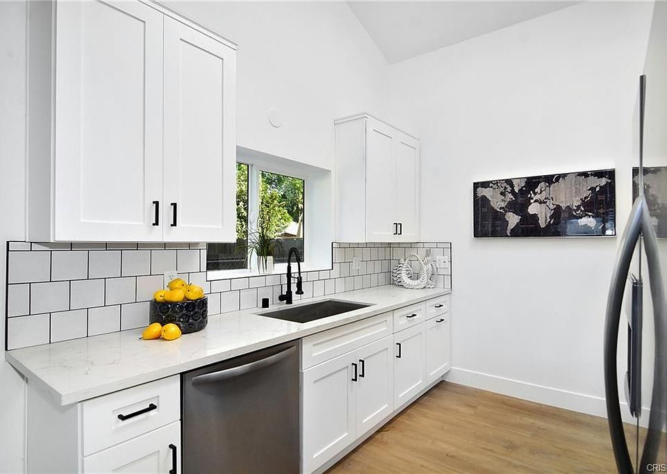 Charming single story ranch house in a quiet neighborhood. Completely rebuilt 3 bedrooms and 2 bath home for rent. Open floor plan and high vaulted ceilings throughout. Stunning landscape & covered front porch welcome you home where you will surely be impressed by what feels like completely new construction. Inside a living room with fireplace is open to the dining area and flows right into the brand new kitchen with white shaker cabinetry, quartz countertops, & stainless steel appliances. Wood flooring throughout the home. Two guest bedrooms are serviced by a remodeled hallway bath while the master features an en-suite bath and sliding door access to the backyard. Large laundry room, hallway cabinets, LED recessed lighting, & new plumbing, electrical, and HVAC are just some of the other notable features of this home. NOTE: The lot contains two units (main house and an ADU). The ADU is detached from the main house and is separated by a fence. Renter responsible for water, gas and electric. No smoking allowed.