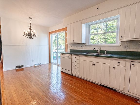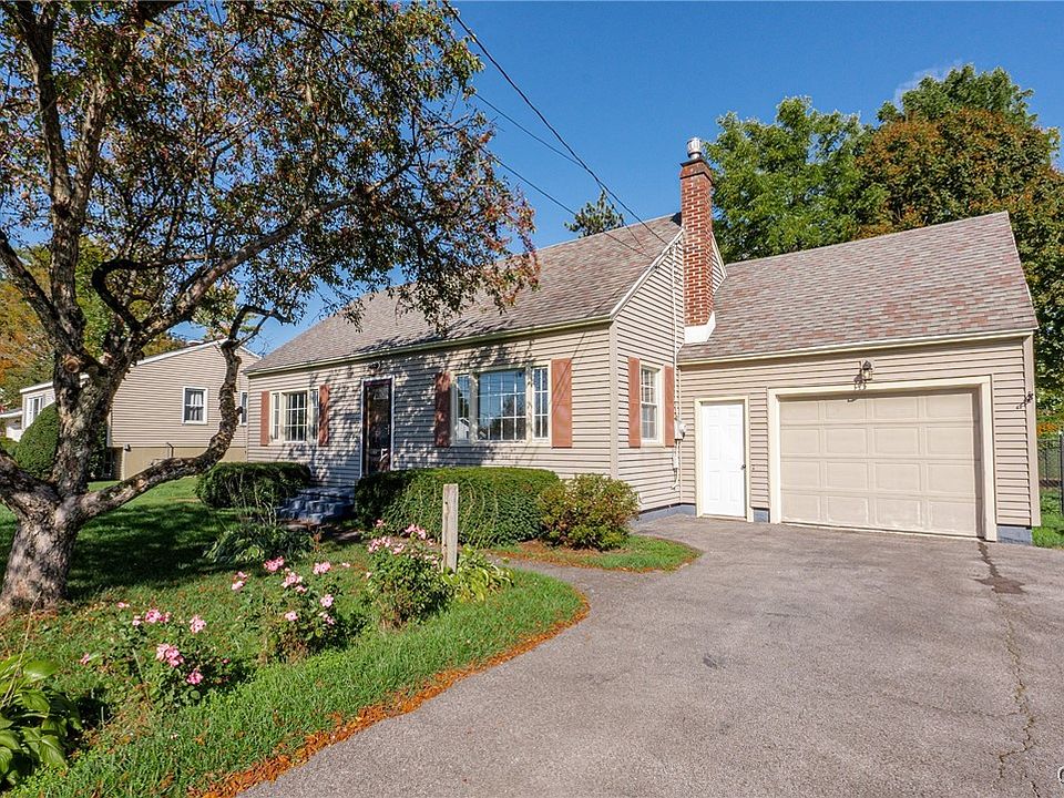 TIDY, BUTTONED UP & MOVE-IN READY!! This modest looking Cape boasts 4 bedrooms...two on each level... and TWO FULL bathrooms! Hardwood floors, both exposed & under carpet, fresh interior paint, vinyl windows & sliding door, UPDATED ROOF, updated 150 amp service entrance, freshly stained deck, NEW garage door opener, UPDATED high efficiency gas furnace (2020) & UPDATED water tank! The 5 yr old washer & dryer both stay! B-Dry basement water proofing system with transferrable warranty provides peace of mind that the basement will stay DRY. Septic last pumped April 2024.