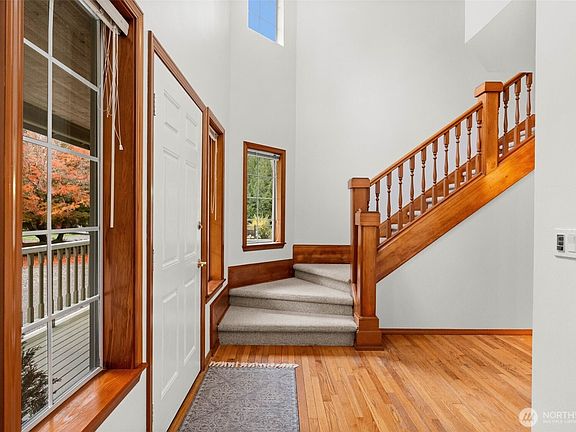 Move-in ready! Beautifully maintained & updated 4-bedroom home on nearly an acre of flat, park-like grounds right next to the peaceful trails of Banner Forest. Fresh interior paint, new carpet, and updated lighting throughout. The open-concept kitchen and family room overlook the private backyard—perfect for relaxing or entertaining. Situated on a quiet dead-end road, this home offers privacy, mature landscaping, circular driveway and plenty of outdoor space to enjoy. Large spaces to add additional covered RV Parking or a shop. For those commuting, the property is conveniently located minutes from ferry & hwy 16.