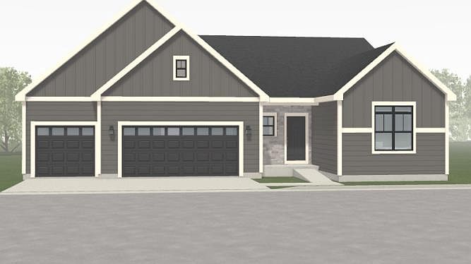 Tim O'Brien Homes Lavender plan boasts an open living in the great room, kitchen & dining. Quartz countertops and large pantry make this large kitchen a chef's dream. LVP flooring throughout main floor main living spaces. Cozy fireplace in the great room. The primary bedroom is a split floor plan and features en suite bath with tiled shower and two walk in closets! 2 additional bedrooms, one with walk in closet. Plenty of storage in the 3-car garage. Healthy home HRV air system in this green built home. Located in Bear Tree Farms featuring a community splash pad, pickleball court, park, walking trails & more! Photos of similar model.