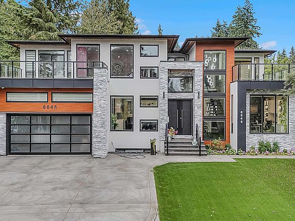 Experience luxury living in the prestigious Sunshine Hills of Delta with this new home situated on a massive 9,000+ sq ft lot, with 70 ft wide frontage offering plenty of driveway parking. The main floor has an elegant open-concept design with a bright living room, a spacious family room, a large chef's kitchen with a designer range hood, and a separate prep kitchen. Additional features include a mudroom, a stylish bar area, a steam fireplace, and a bedroom with its own ensuite-perfect and office room. Large windows, sliding glass doors, and open-riser stairs create a grand look thought out. Upstairs offers 4 bedrooms, each with walk-in closets and private ensuites, along with a laundry room. An elevator connects all 3 Floors. Basement has 2 beds legal suite, theatre room, and guest suit.