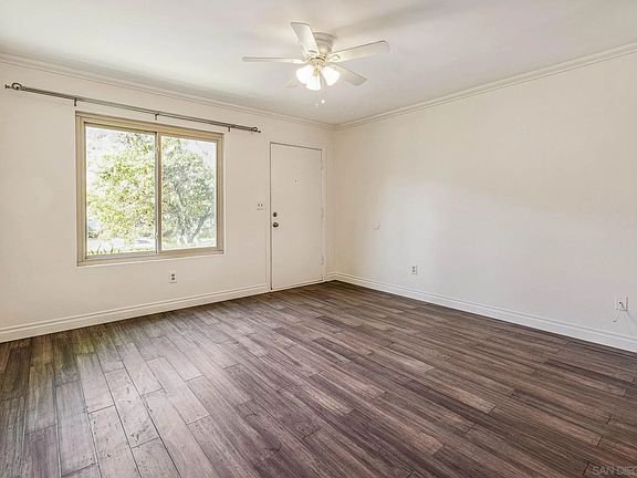 Are you looking for the perfect combo of location, & quiet? Welcome to 6646 Bell Bluff Ave. This charming end unit townhome offers the ultimate convenience of San Diego. This freshly painted 2 bed 1 bath condo features a spacious private patio, open layout, and convenient amenities. Upgrades include a newer kitchen, bathroom, dual-pane windows/sliders, and water heater. Parking and storage is abundant with 1 carport space, 1 tandem spot. The carport has 5 private storage lockers and community laundry (for 5 units). Plenty of street parking for guests. Individually metered for water, low HOA dues. Walking distance to Mission Trails Regional Park and Visitor Center, close to Cowles Mountain, Lake Murray, Downtown San Diego, metro areas, VA Approved!!!