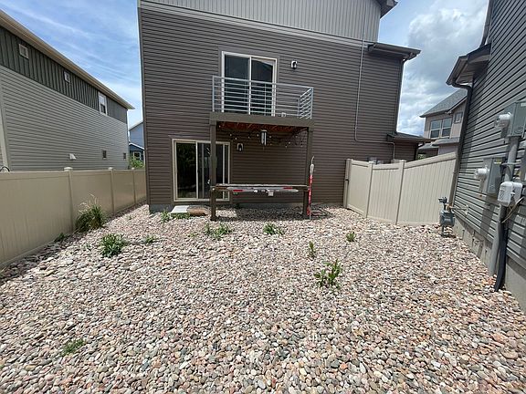 This is a unique and beautiful property in Banning Lewis Ranch. This is a wonderful 3 level home. On the main level, you will find open concept living. Large windows allow plenty of natural light. Kitchen boasts large island perfect for additional seating and access to balcony. Primary bedroom privately adjoins with primary bathroom and walk-in closet. Also located on the main level is an additional half bath. Upstairs are 2 additional bedrooms and bathroom. Downstairs you will find a large rec/bonus room. Plenty of storage available and access to the fenced back yard