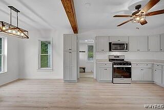 Step inside and be impressed with this "like new" home on existing foundation. The kitchen has great space to meal prep and socialize with your guests in the country kitchen with dining area.