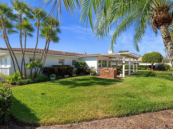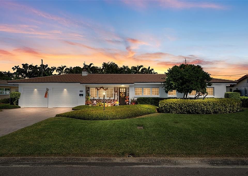 Welcome to 6649 10th Ave N! Nestled in the highly sought-after Rose Garden neighborhood of West St. Petersburg, this beautifully maintained 3-bedroom, 2-bathroom, 2-car garage home exudes pride of ownership and tasteful upgrades throughout. From the moment you arrive, you’ll be impressed by the immaculate curb appeal featuring lush custom landscaping, a freshly painted exterior, and a paver driveway. Step inside to discover elegant crown molding, newer double-pane windows, wood and tile flooring (no carpet!), plantation shutters, upgraded lighting, and a cozy wood-burning fireplace that adds warmth and charm. The kitchen is a true showpiece, offering sleek stainless-steel appliances, a gas stove and hood, polished granite countertops, custom wood cabinetry, and a stunning custom wood ceiling that ties it all together. The primary suite features two closets, including a cedar-lined walk-in, and an en-suite bathroom with both a stand-up shower and soaking tub. The second bedroom includes built-in custom cabinetry and is perfect for a home office, while the third bedroom adds character with Wainscoting and Chair Rail detailing. Step outside to your private backyard oasis, where a charming pergola provides the perfect balance of shade and sunlight over a spacious stone patio — ideal for outdoor dining and relaxation. Enjoy the calming fountain, lush tropical landscaping, and the privacy of a newer PVC fence surrounding the yard. The 2-car garage offers custom built-in storage, providing ample space for tools, hobbies, and organization. Additional updates include a new A/C system and new hot water heater, offering peace of mind and energy efficiency. This home seamlessly combines classic elegance, modern comfort, and outdoor beauty — a true gem in one of St. Pete’s most desirable neighborhoods.