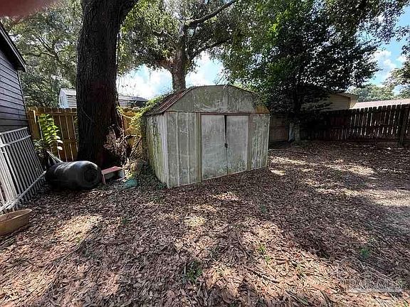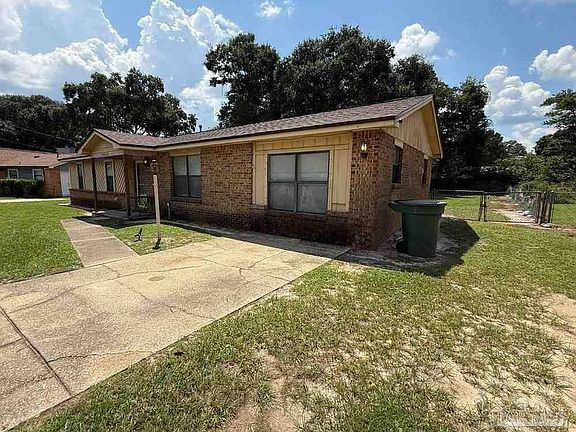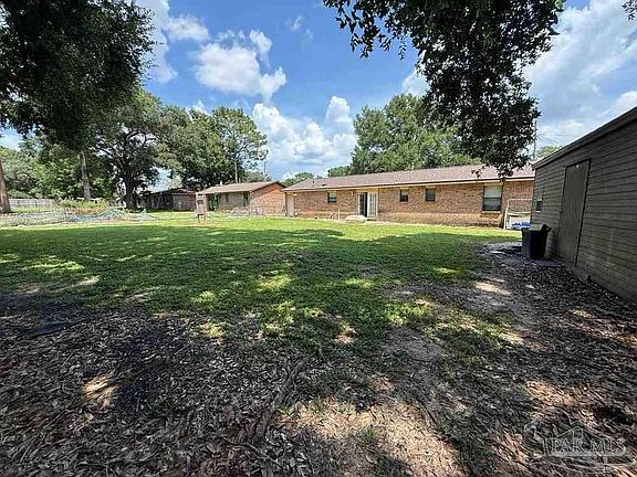 This 3 bed, 2 bath ranch offers 1,488?sq?ft of living space on almost a third of an acre. A 4 year old roof and 6 year old HVAC system provide peace of mind, while a brick exterior and slab foundation create a low maintenance structure. The open concept living and dining area features a brick fireplace and flows into a U shaped kitchen with ample cabinetry, a gas range, built in microwave and dishwasher. Sliding glass doors off the dining area lead to a generous, fenced backyard with mature oaks, offering shade and room for a pool, garden or play set. Two outbuildings—including a workshop with a roll up door—provide excellent storage or hobby space. The split bedroom layout includes a primary suite with walk in closet and ensuite bath, plus two additional bedrooms served by a hall bath. An interior laundry room houses the water heater and electric panel and has a door to the backyard. A large bonus room adjacent to the kitchen could serve as a living room, home office or fourth bedroom. While the home needs cosmetic updates—carpet replacement, fresh paint, and kitchen/bath modernization—the big ticket items have been handled. With off street parking and no HOA, this property is an excellent opportunity to build sweat equity in a convenient west side location near shopping and commuter routes.