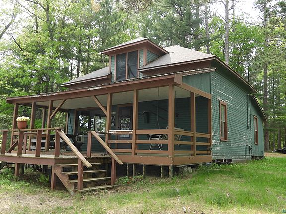 Nestled in the tall pines these two vintage 1940s 3-season cabins are located on a large 1.54 acre point with over 311 feet of lake frontage (450+ along the waterline) on private Iron Lake (No public boat landing). Known for its' excellent bass, bluegill, crappie, and northern pike fishing. One of the best fishing spots is right off your dock. Take an evening pontoon boat ride to visit the eagle nest on Pepping Point or just relax and listen to the loons as the sunsets. Update the cabins or remove them and build your dream retirement lake home. The cabins have been rented out through Hiddens Acre Resort.