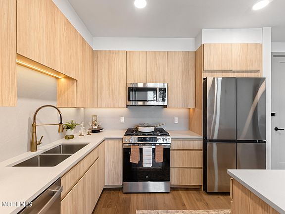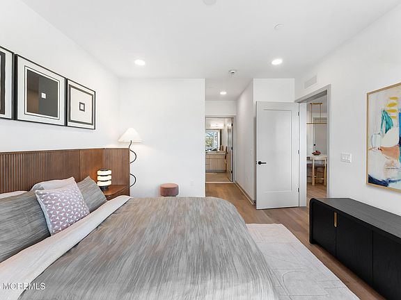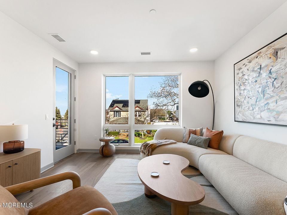 Welcome to The Inkwell Lofts, a boutique collection of one- and two-bedroom homes just moments from Long Branch shoreline. Residence 309 is a split two-bedroom, two-bath home offering 1,084 square feet of interior living space. Each room has floor to ceiling windows with North exposure for all day sunlight. Off the living and dining area is access to a private 87 sf balcony. The well-appointed kitchen features high-end stainless-steel appliances, quartz countertops, matching backsplash, and center island. The primary bedroom includes a walk-in closet and en-suite bath with a double vanity and stall shower. The secondary bedroom offers privacy, access to the balcony and easy access to the guest bath. Thoughtfully appointed bathrooms feature elegant quart topped vanities, bronze champagne fixtures, and full tile surrounds, creating a spa-like experience.