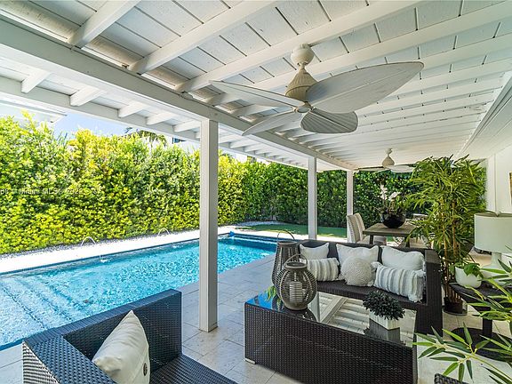 Coastal inspired Cape Cod beach house in the heart of Key Biscayne: Open and spacious gourmet kitchen with large island overlooking the pool area is the focal point of this home; low maintenance lush garden surrounds the outdoor covered patio, making this a perfect home for entertaining. Charming and bright living area embraces the indoor / outdoor lifestyle; Separate principal room, 2 additional bedrooms on the south side, heated pool, 2 refrigerators, separate pantry, and a gym/media room that could be converted to a fourth bedroom, also has a private office/den area. Partially replaced impact windows, recently appraised for $2.9M as per appraisal home has 2,700 sq.ft of total construction & it has 4 bedrooms / 3 bathrooms. Move in ready, show with confidence.