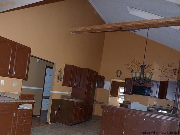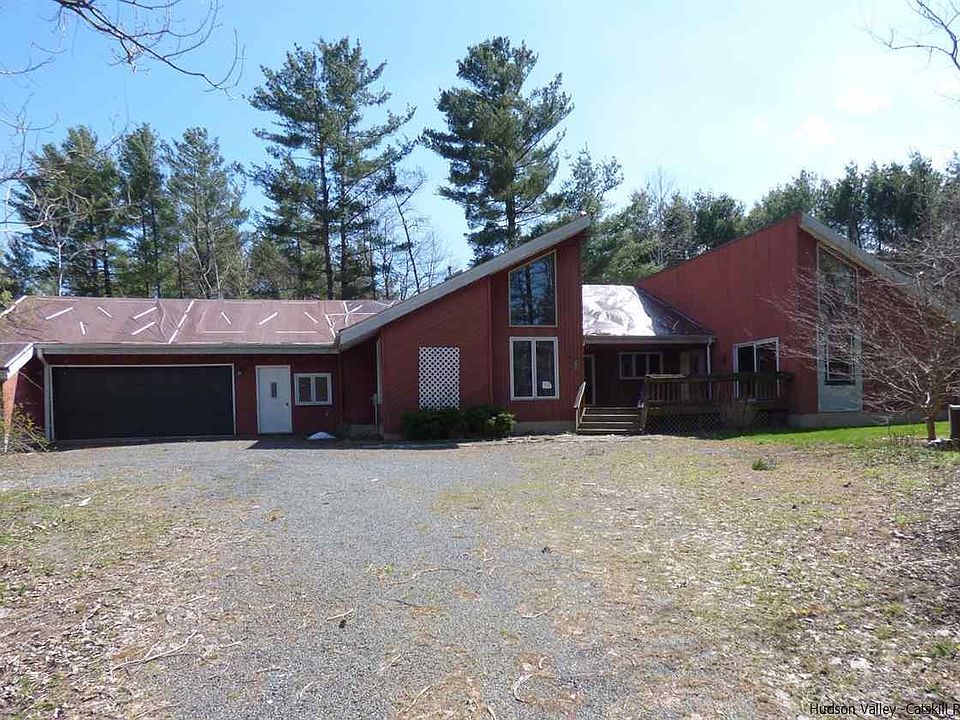 Very large 3184 SF contemporary house with large open rooms and vaulted high ceilings on 2 acres of level land. 4 Bedroom 3 Baths with an extra bonus room above the master bedroom. The master has a large slider door that opens up to its own deck. The kitchen is very large with a breakfast bar and several walls of cabinets, it has very high beamed ceilings with skylights. The Living room also has a slider door and a fireplace. Lots of closet space, a crawl space basement and an attached 2 car garage for storage. There is also an above ground pool, several decks and a storage shed. Cairo Durham Schools.