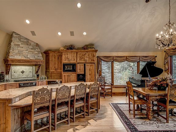 An incredibly special home and lot in Mountain View Estates, where the sounds of Fish Creek can be heard from every room. This 5-bedroom, 4.5-bath residence blends classic mountain style with rich wood accents and a stunning two-story dry-stacked fireplace. The open, light-filled floor plan features a great room with floor-to-ceiling windows that capture the beauty of Fish Creek. Enjoy both a family entertainment area and a den with walk-out patio access to the creek. Each spacious bedroom has access to a private bath, and the main-floor primary offers a fireplace, steam shower, and custom walk-in closet. Surrounded by mature landscaping, lawns, and a tranquil water feature, this home harmonizes perfectly with its natural setting. A hidden gem in Steamboat Springs—offering privacy, serenity, and a coveted creek-side location in one of the area’s most desirable neighborhoods.