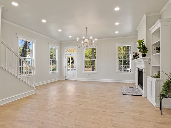 Cozy fireplaceUpstairs balconyStainless-steel appliancesCustom built-insOpen-concept living spaceAbundant windowsQuartz countertops