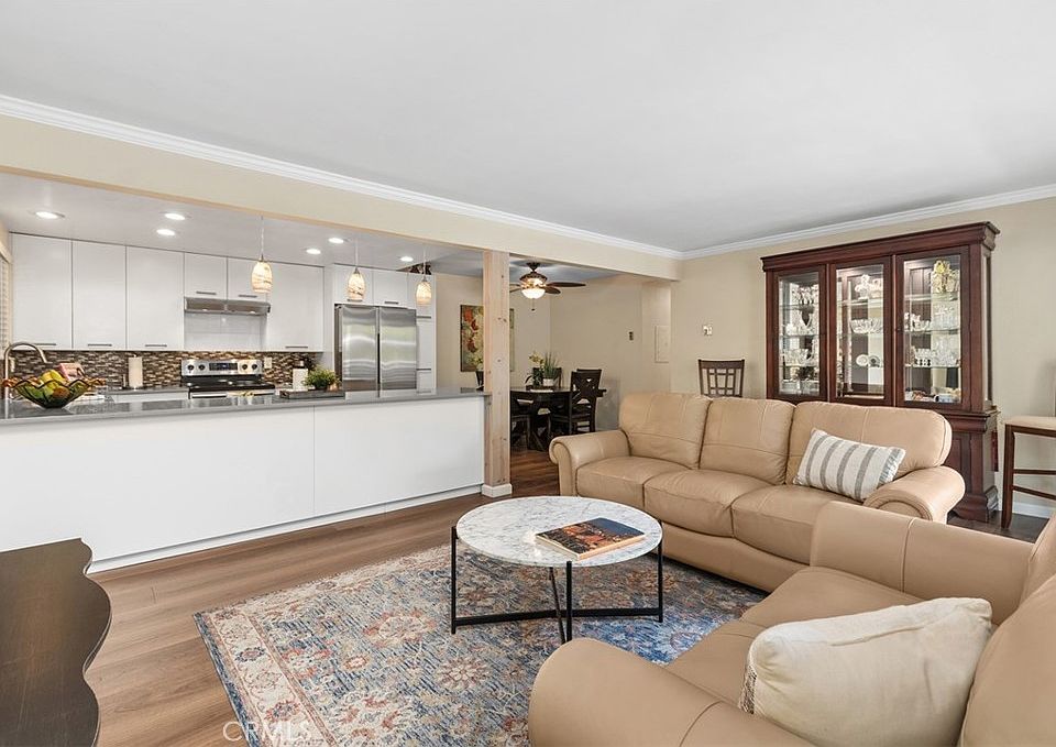 Nestled on a lovely street close to the greenbelt, with nearby carport and guest parking, this home greets you with quality upgrades throughout: AC in the living room, ceiling heating system, smooth ceilings, an open kitchen, and in-home washer and dryer. Stunning laminate flooring flows through the home. The spacious living room opens to a covered balcony, a place to relax and enjoy the vibrant garden and flowers.