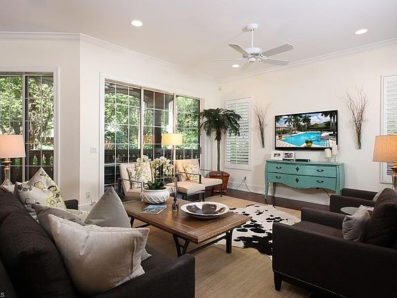 Fabulous open plan for easy entertaining. Living areas feature dark wood floors, crown moldings, nice architectural details, plantation shutters & soft white walls. The newly remodeled kitchen offers white, shaker style cabinets, marble countertops and stainless appliances completing the transitional style of this updated residence.The master suite is large & offers a walk-in closet and a spacious bath. The 2nd bedroom has an ensuite bath & the 3rd bedroom,with an adjoining bath, could also be used as a study. Offered furnished with exclusions.