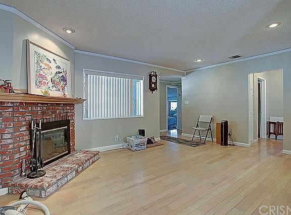 Charming Reseda home located on a quiet street. Living room with hardwood floors, recessed lights, crown molding and brick fireplace. Dining room with tile floors opens to spacious kitchen and back yard. Large kitchen with newer appliances and lots of cabinet and counter space. Laundry room and powder room is right off the kitchen for convenience. Three bedrooms with laminate flooring and ceiling fans, have access to a shared bathroom. Garage converted, with permits, into an over-sized master suite/rec room with lots of closet space. Low maintenance back yard with covered patio and permitted large storage shed and workshop combination. Great neighborhood, adjacent to Tarzana & Woodland Hills. Just minutes to the Warner Center. Close to Pierce College, Orange Line, public transportation, shopping and more