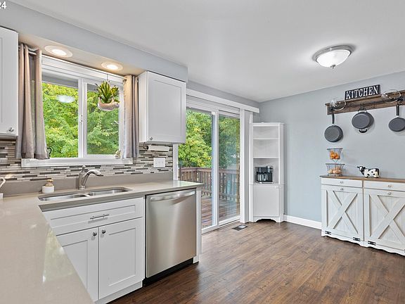 Beautifully updated home. 4 brd. 3 bath in well-established quiet neighborhood. The large lot has plenty of room to park your boat or RV! Updates include, new laminated waterproof wood flooring throughout, newer furnace, water heater and bathroom vanities. Enter this classic split-level home into an open living room with cozy fireplace, dining room and large windows. The kitchen hosts quartz counter tops, white shaker cabinets, stainless steel appliance's with door that opens onto a large deck overlooking the back yard. Great for entertaining. 3 bdrms up, including primary with ensuite. Downstairs is a second large living room with fireplace, full bathroom/laundry and 4th brd. with pull down murphy bed. French doors that open to the beautiful covered back patio and fully fenced yard. This could be used as an ADU! This home has plenty of room for the whole family. (Refrigerator in kitchen stays) Open House: 10/19 12:00 - 3:00