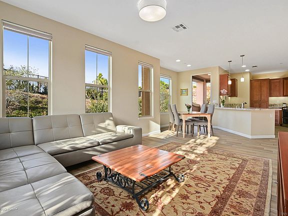 This Sorrento Valley model-like home is situated in a tucked away location in a pristine community with no neighbors behind! This showcase home, the largest model in the community, features an open floor plan kitchen with a large breakfast bar, granite counters and stainless appliances. With no other units sold in this development throughout the entire year, these homes are extremely rare and hard to come by. This exceptional end unit residence includes several upgrades throughout, including tile plank flooring, window coverings, light fixtures and patterned carpeting in bedrooms with custom built storage and epoxy flooring in the attached 2 car garage. Additional highlights include indoor laundry, central a/c, walk-in closets and 2 outdoor covered patios. Sorrento Ridge offers a beautiful canyon side swimming pool, spa and BBQ area in a park-like setting. Only a short distance to nearby shopping, dining, freeway access and local beaches.
