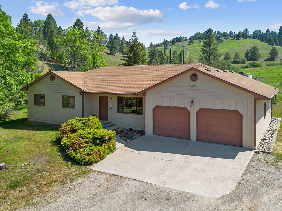 Incredible 3.92 acre property with breathtaking views and NO covenants. Enter via the private drive and you will find 6650 Gharrett sitting pretty with sweeping mountain views. You would never know you are just a few minutes from downtown because of the privacy, peace, and quiet this lot offers! The open concept living space has a large picture window that captures the views perfectly + tall ceilings. The primary bedroom has an en-suite bathroom + walk in closet. There are 2 additional bedrooms and a hall bath. Updates include: Fresh paint in main living area, new hot water heater + furnace and updated flooring in kitchen and bathrooms. 2 car garage with extra space for a workbench or storage. The lot also has an RV pad (w/ septic, water, and electric), barn, and shed. It’s a rare opportunity to find this big of a lot with no covenants so close to town. Contact Leah Whitney at 406-274-2578, or your real estate professional.