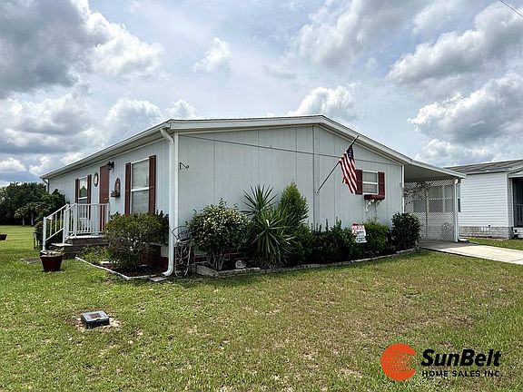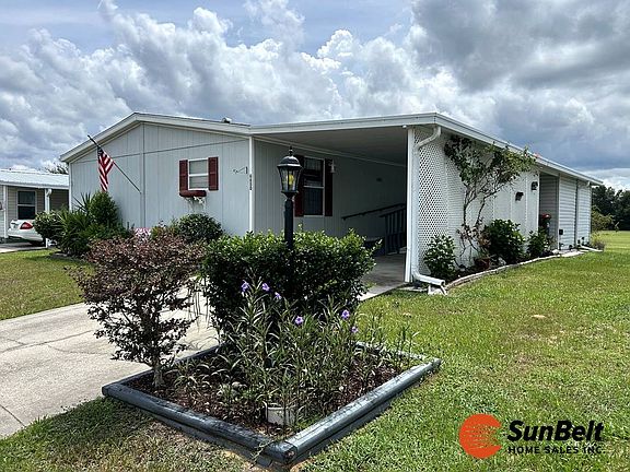 Discover a harmonious blend of comfort, style, and community. Nestled in an enviable corner lot within a vibrant 55+ community, this home offers an ideal retreat for those seeking a peaceful yet active retirement lifestyle. This home is a 2 bedroom with their own on-suite, large closet space and large open concept living, dining and kitchen. This home will need some of your special touches to make it your home. Central heat and air is in great condition. 12 x 32 Carport with ramp going into the home, 12 x 16 & 6 x 7 Shed with 1040+ sq.ft. of living. This home offers exceptional value with a low lot rent of $475/month, including services such as garbage pickup and sewer. The community features a Spanish style clubhouse, pool, and scenic surroundings. Located in Ocala near Silver Springs, it provides a tranquil yet engaging retirement living experience with various activities and upscale amenities.