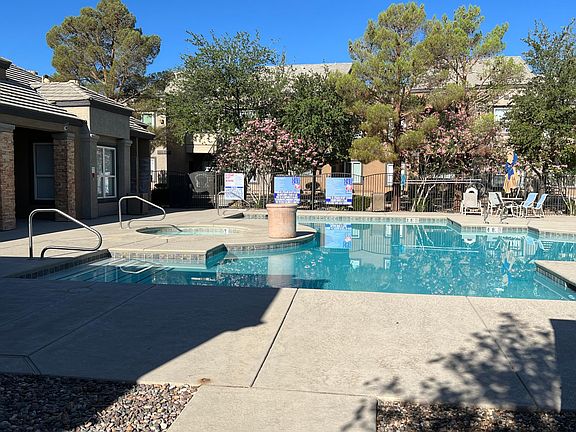 1 Bd. /1 Ba. located in Southwest in a gated community, Upstairs unit, breath taking views , community pool w/ cabana's, parking spaces available for guests, open floor plan w/kitchen overlooking the living room, floating shelves in the living-room, ceiling fan and light combo, kitchen area with stainless steel appliances , microwave, separate pantry area , separate laundry area, Primary bedroom w/ walk-in closest area, full size bathroom attached , separate linen area, covered patio area, this is a must see and it will not last! Will considered pets/ Extra $25 per/mo. per/ pet Go to RPMLV.com to apply online and for viewing the property by clicking on listing $60 Application Fee (per adult) (Non-Refundable) $200 Move-in Admin Fee (Non-Refundable) $300 Pet Fee (Per Pet)(Non-Refundable) $1350 Security Deposit (Refundable) NO SMOKING ALLOWED