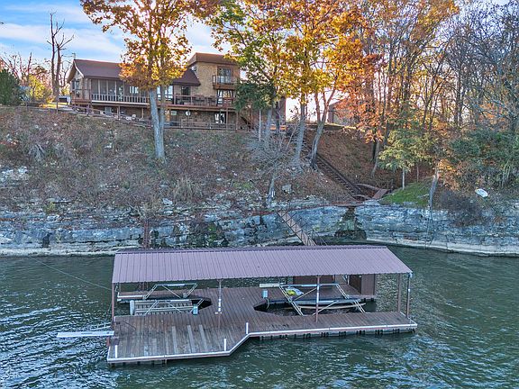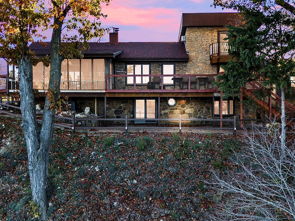 This stunning waterfront residence, situated on 2 acres (m/l) with approximately 275' shoreline, boasts 3 bedrooms, 3 bathrooms, and an office. The property features updated bathrooms, a gourmet kitchen, a brand-new deck, and breathtaking views. Encapsulated steel constructed dock with 2 26' docks. Double tram plus stairs for easy dock access. A spacious shop building provides ample storage for toys, cars, and RVs, making this an entertainer's dream and a rare find on Grand Lake. Sells furnished and VRBO FRIENDLY!!