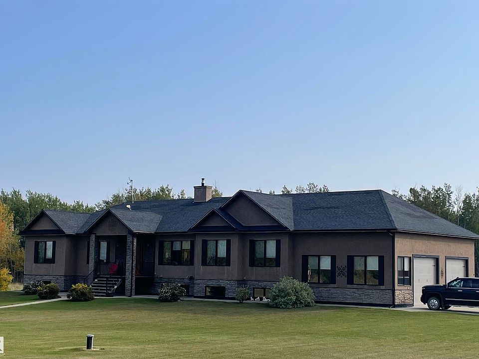 A property where dreams are made! 3600 sq ft of living enjoyment! The home and property built in 2012 sits on 79.82 acres of a mix of grassy horse hay just seeded, and boreal forest mix! The home boasts granite counter tops, main floor bar and entertaining area, Michael Amini Dining set. Furnishings included. 10 ft ceilings with all doors 8' tall! The fireplace is central providing an unbeatable ambience. Primary bedroom with a walk in California closet, 4 piece en suite! For your guests. A suite complete with kitchen, living, bedroom and bathroom area all self contained. All season sunroom 12x16. The attached garage is 960 sq ft. Detached 40x60 garage radiant heated, insulated with concrete flooring, mezzanine, and a 14x24 garage door. Total 3 large lean-to's. The barn is 40x72 with concrete floor, individual stalls, heated office area. Pole shed 60x120. Large trout pond. Chicken coop, gazebo w rock fireplace, metal horse sculptures from Mexico. So many amazing things too many to mention them all.