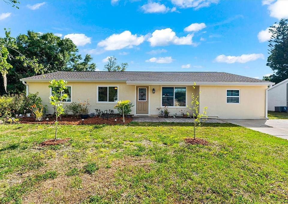 This spacious home features five bedrooms, providing ample space for a growing family or accommodating guests. In addition to the bedrooms, there is also an office, perfect for those who work from home or need a quite space for studying. The property offers a large, fenced backyard, providing a safe are for pets to play. You can also enjoy the outdoors in the large screen lanai, perfect for entertaining or relaxing. The interior of the home boasts newly installed wood laminate flooring, adding a modern touch and easy maintenance. The roof was recently replaced in November of 2022. For additional storage and convenience, there are two storage sheds located in the backyard. These sheds offer plenty of space for storing outdoor equipment, tools or other belongings. One notable feature of this home is the double panel hurricane impact windows for added protection during severe weather conditions. All of this and only 25 minutes to the nearest beach, 15 minutes to downtown Wellen Park and the Atlanta Braves spring training facilities!