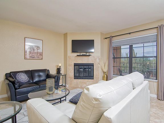 Primed and positioned in one of Tucson's finest and most fashionable locations, this stylish upstairs Villa is ideally set up for Resort living, A corporate retreat, remote work, or an extended stay where you can get familiar with the Catalina Foothills and all its beauty. Inside this unit you will enjoy newer furnishings with comfortable furniture and most everything you will need for an extended stay. A few of the amenities you will enjoy include a private covered balcony with City&Mountain views overlooking the heated community pool/spa and tennis facilities/private fitness center. Adjacent to the La Encantada outdoor shopping mall you will be able to walk to some of the finest restaurants/shopping you will find anywhere! Please call for seasonal rates & availability. Available for a long term lease at current advertised rate in early March.