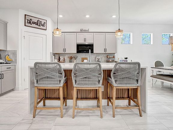 This open floorplan showcases premium finishes with a gourmet kitchen, deluxe appliances, waterfall island, quartz countertops, smart home features and more. Impact-resistant windows and doors provide peace of mind year-round and the spacious backyard offers ample room for a pool, creating your own private retreat.