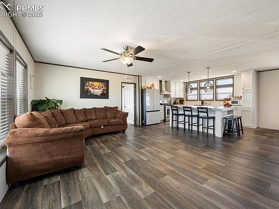 Open roads, country living, mountain views, incredible sunsets, and the sound of freedom, are all offered with this glorious 35-acre home. Completed in 2022, this home maintains its brand new aspect and is still under manufacturer extended warranty. If that isn't enticing enough, a step inside will check all your dream home boxes! Luxury vinyl plank is displayed upon entry, throughout the great room, flowing from the kitchen into the dining room, and continuing to the back of the home. Built and designed with taste and elegance in mind, every fixture, kitchen detail, and bathroom touches are noticed. To top it off, there is a separate mud room/laundry space with custom cabinetry and a walk-out for convenience. Need a quiet place to work, game, or use as a children's homework area? There's a space for that as well! Retrieve after a long day of dirt bike riding, chasing chickens, or riding your horses, into the sizable and isolated primary suite, with an attached impressive and relaxing 5 piece primary bath. Three additional bedrooms are located on the opposite end of the home. The beautifully designed kitchen, not only features a wall of windows, but modern country light fixtures, new stainless steel appliances, and an eye-catching island built with efficiency, space, and size in mind. Due to its substantial length and flow, the dining area can be used as an extension of the kitchen such as a butler's pantry, or a multi-functional space of your choice. The great room opens up to the entire main floor, making it an ideal hang out spot for family, friends, and entertaining. If these features haven't been convincing enough, how about a 4-car detached garage?! If the entire space isn't utilized for cars, this extensive garage can be turned into whatever needs or desires come to mind; such as a man cave, workshop, storage, office, gym, art studio, the list goes on! Turn a dream into reality with the freedom to live however you please. Welcome home!