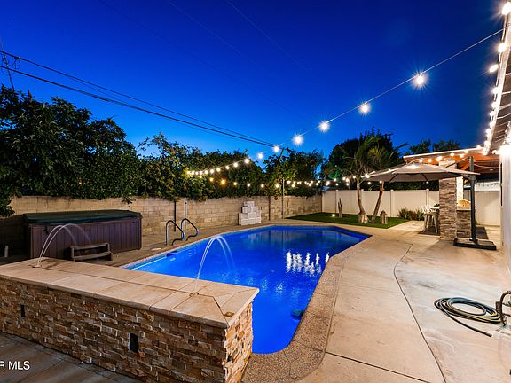 Relax in the backyard oasis with a sparkling pool, spa, palm trees, a covered patio, and a granite outdoor kitchen with built-in barbecue. The property offers an upgraded ADU with its own address, separate utilities, one bedroom, a living room, and a kitchenette. An oversized driveway provides plenty of parking. Close to Pierce College, CSUN, and major freeways. Move-in ready and not to be missed!