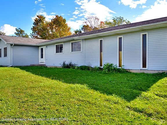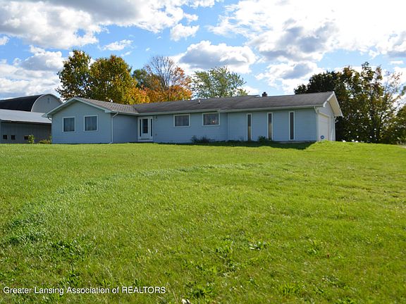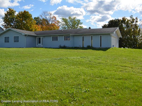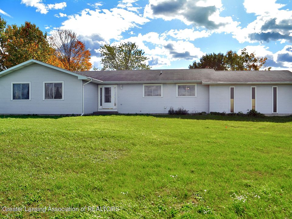 Don't miss out on this charming ranch home in Ovid-Elsie school district, sitting on just under 5 acres! The home includes ample storage with a 30x48 pole barn, 2 car attached garage and basement. This open concept ranch features a den with a fireplace, a living room with built-in cabinets, a dining room with a slider to a 3 seasons room-that gives a gorgeous view of the backyard! All 3 bedrooms are on the main floor including main floor laundry. The kitchen has all appliances and a newer furnace and water heater. Call for your showing today!