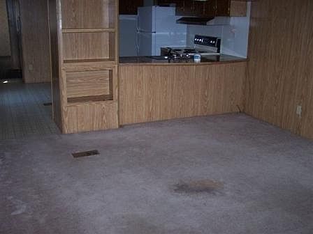 This is a yellow and brown 14 x 70 single wide mobile home. 2 Bedrooms and 1 Bathroom. Refrigerator, stove, washer and dryer are furnished. On the west end isone bedroom and bathroom. The other bedroom on the opposite end. There is a large living room-kitchen combination room. The washer and dryer are located off the kitchen area and near the rear door. There is a small covered rear porch area suitable for storage. The floors are laminate and carpet. The carpet is worn and stained and that is why this unit may qualify for pets. Heat is by mobile home furnace. there is a window AC unit near the kitchen with the tenant may use. Tenant may use other window AC units (not furnished). The unit can be HUD approved. This is a quite country-setting neighborhood, and there are no close neighbors. There is ample parking. $400.00 per month with minimum $400.00 deposit for 12 month non-pet lease. $450.00 per month with minimum $450.00 deposit for less than 12 month non-pet lease. $450.00 per month with $450.00 non-refundable pet fee for 12 month pet lease. $475.00 per month with $475.00 non-refundable pet fee for less than 12 month pet lease.