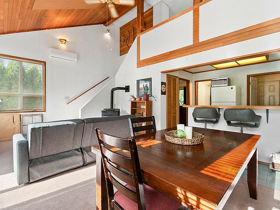 Don't Miss this GEM at Kawkawa Lake! Kereluk Residents can join and enjoy Exclusive Shared DEEDED ACCESS to a WATERFRONT LOT w/ DOCK and picnic area. Welcome to this Unique & Versatile 1 1/2 Story Home, nestled in a picturesque setting w/lush landscapes, featuring vaulted ceilings, a main floor Bdrm + HUGE Primary Bdrm. LOFT, easily can serve as 2 bdrms, Perfect Blend of Rustic Charm with Modern Amenities, wood finishes, gas f/p and newer heat pump. Private rear yard has deck overlooking tranquil creek, + stunning Mnt Views from front patio. Lots of Parking, sani on site for RV. City water/sewer. Awesome Lakeside Living!! Watercraft activities, jet ski, boating, fishing for salmon. Mins to shopping, hospitals, rec center, pool rink, just 2 hrs Vancouver!
