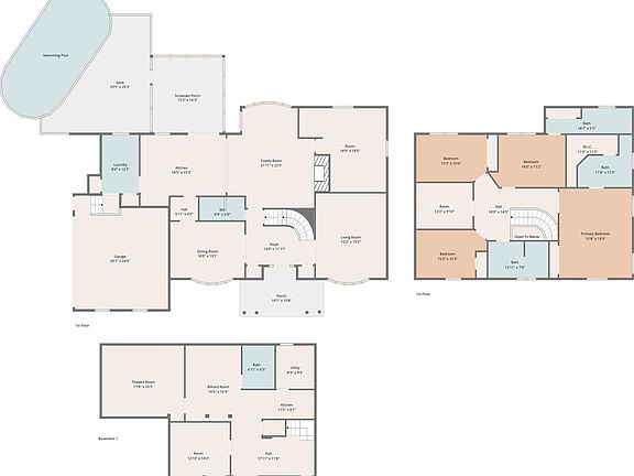 Step onto the covered front porch and into the foyer, where you’re immediately greeted by a striking spiral staircase with a custom iron railing—a true statement piece that sets the tone for this beautifully updated home. The exterior showcases elegant white brick with bold black accents, giving the home timeless curb appeal, while the fully redone interior blends classic charm with modern finishes. New flooring flows throughout, and arched doorways have been added throughout the home, creating a sense of sophistication and openness in every room. Just off the foyer, a spacious living room offers a bright and inviting space perfect for a formal sitting area, play room or home office. Adjacent to the family room, another generously sized main-level room provides ideal space for a main-level bedroom, another private home office option, or creative retreat. The family room itself is cozy and welcoming, featuring exposed beams, a wood burning fireplace, and an open layout that seamlessly connects to the fully remodeled kitchen. The kitchen is a chef’s dream, complete with a large kitchen island, custom cabinetry with soft-close drawers, and ample storage. Modern appliances, including a new dishwasher and oven, along with a new refrigerator, combine with thoughtful design to make cooking and entertaining effortless. A butler’s pantry leads to the dining room, offering an elegant flow for formal meals and gatherings. The oversized laundry and mudroom area is exceptionally functional, featuring room for two full sets of laundry machines, a drop zone, coat storage, and abundant closet space. Upstairs, you will find 4 bedrooms, two of which feature private ensuite bathrooms, a third full bath serves the additional bedrooms, and a small flex room provides extra living space, a hobby room, or additional storage. The finished basement offers endless entertainment possibilities. At its center, a billiards room invites fun, while a tiered media room, soundproofed and projector-ready, creates the ultimate home theater experience. A kitchenette with counter space, bar sink, full-size electric range, and cabinets makes hosting convenient, and a full bathroom plus large utility room add extra functionality. Step outside to nearly an acre of beautifully landscaped property. A large screened-in porch with new door and fan opens to a deck adjacent to the 18x30 above-ground pool (2022) with wrap-around decking and a Goalrilla basketball hoop.